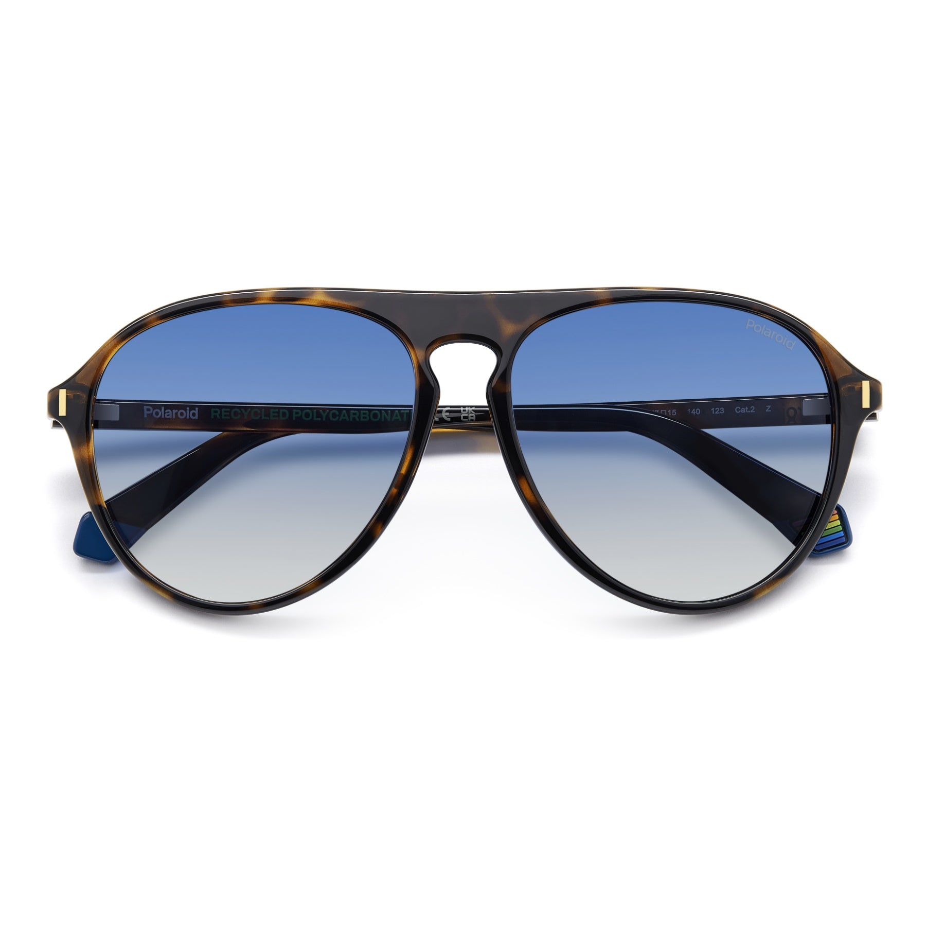 These Polaroid sunglasses for men are a sure bet: their aviator shape is the quintessence of cool. The teardrop shape of the frames is accented by the flat top, keyhole bridge and slender silhouettes. The Polaroid logo printed on the temples, the raised rivet on the front and the rainbow on the inner end tips complete the look. Eco-polycarbonate obtained from renewable raw materials forms the structure of these glasses.
