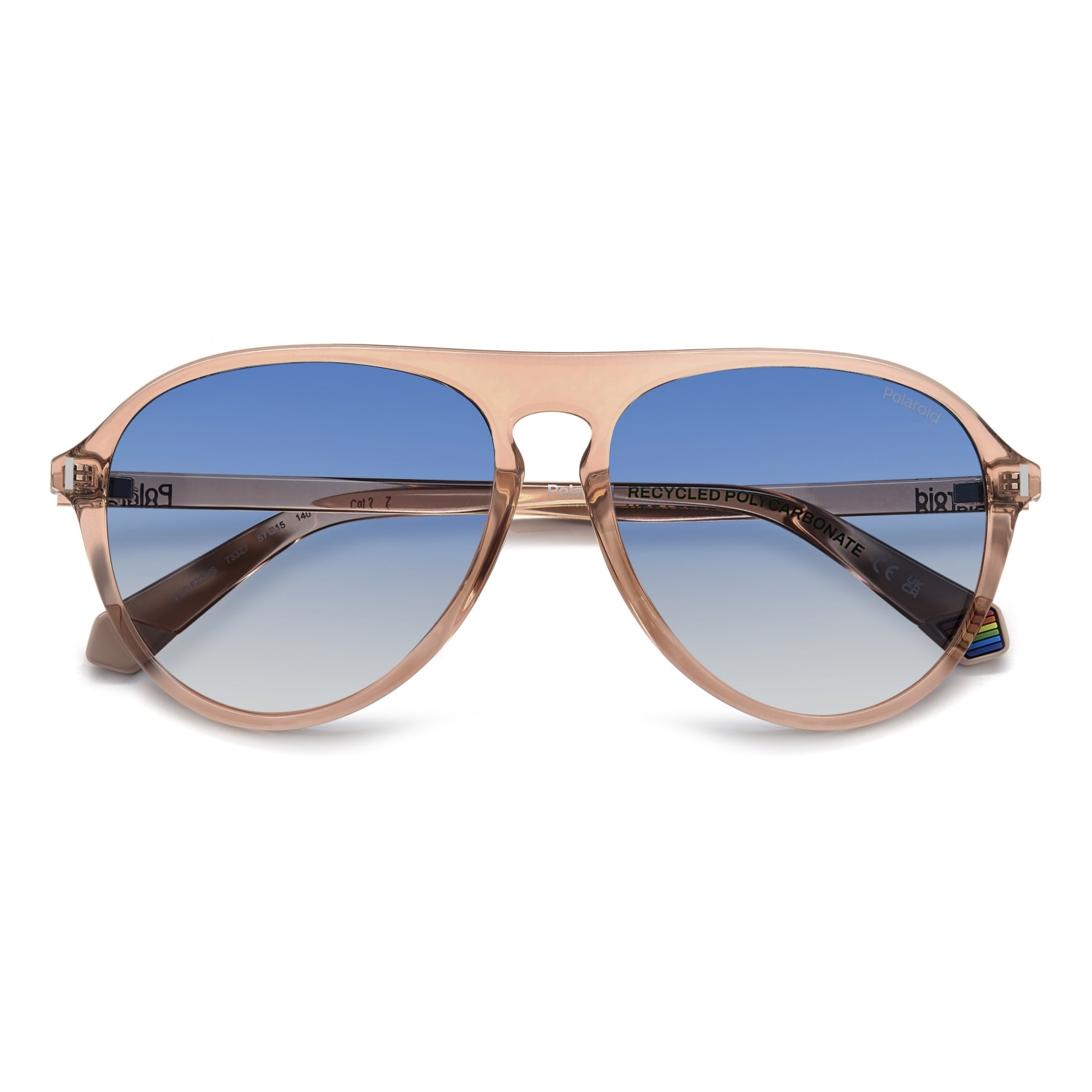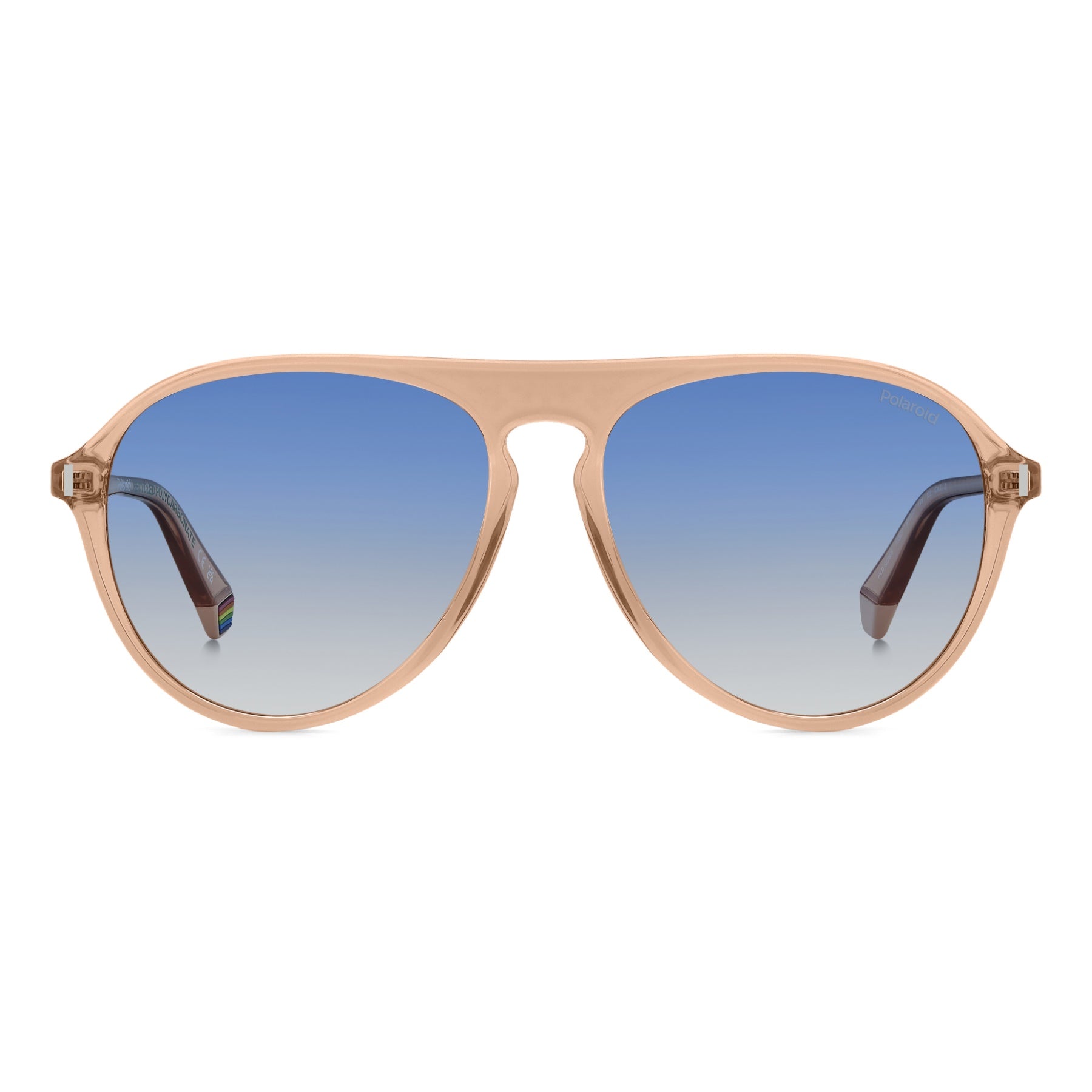 These Polaroid sunglasses for men are a sure bet: their aviator shape is the quintessence of cool. The teardrop shape of the frames is accented by the flat top, keyhole bridge and slender silhouettes. The Polaroid logo printed on the temples, the raised rivet on the front and the rainbow on the inner end tips complete the look. Eco-polycarbonate obtained from renewable raw materials forms the structure of these glasses.