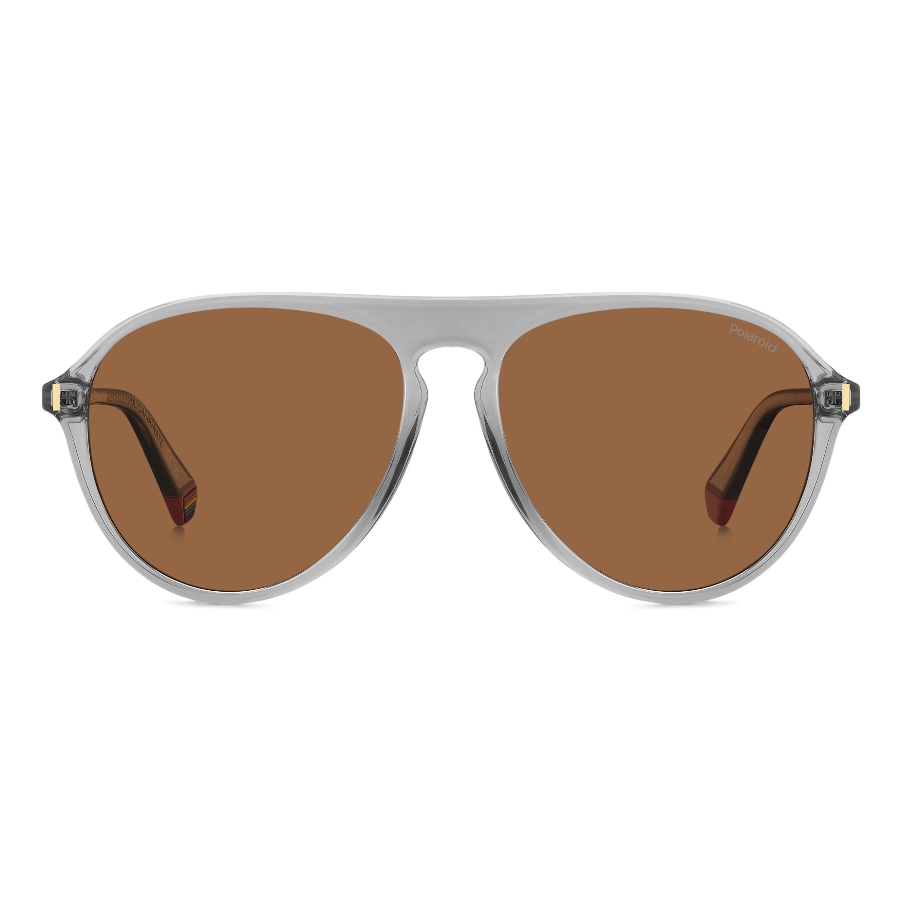 These Polaroid sunglasses for men are a sure bet: their aviator shape is the quintessence of cool. The teardrop shape of the frames is accented by the flat top, keyhole bridge and slender silhouettes. The Polaroid logo printed on the temples, the raised rivet on the front and the rainbow on the inner end tips complete the look. Eco-polycarbonate obtained from renewable raw materials forms the structure of these glasses.