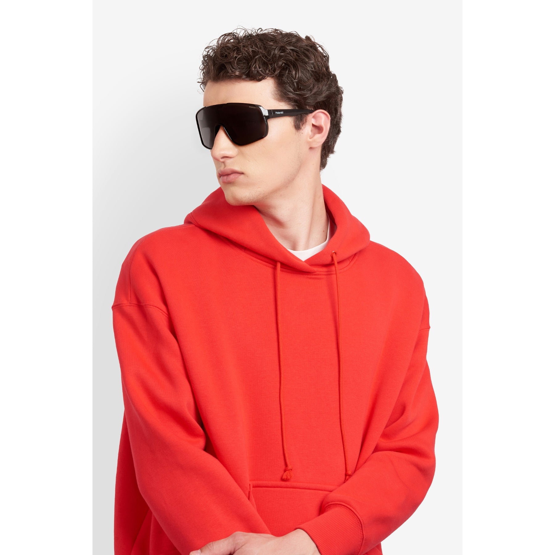 This pair of shield-front sunglasses by Polaroid is the perfect fusion of aesthetics and performance. The eco-polycarbonate structure has a slightly wrap design, with rubber nose pads for optimal grip. The polarized maxi lens is even bolder in the mirrored version. This style comes in black or fluorescent hues with a pop of colour along the top of the frame. It’s sure to win over sports fans and die-hard trend-setters alike.