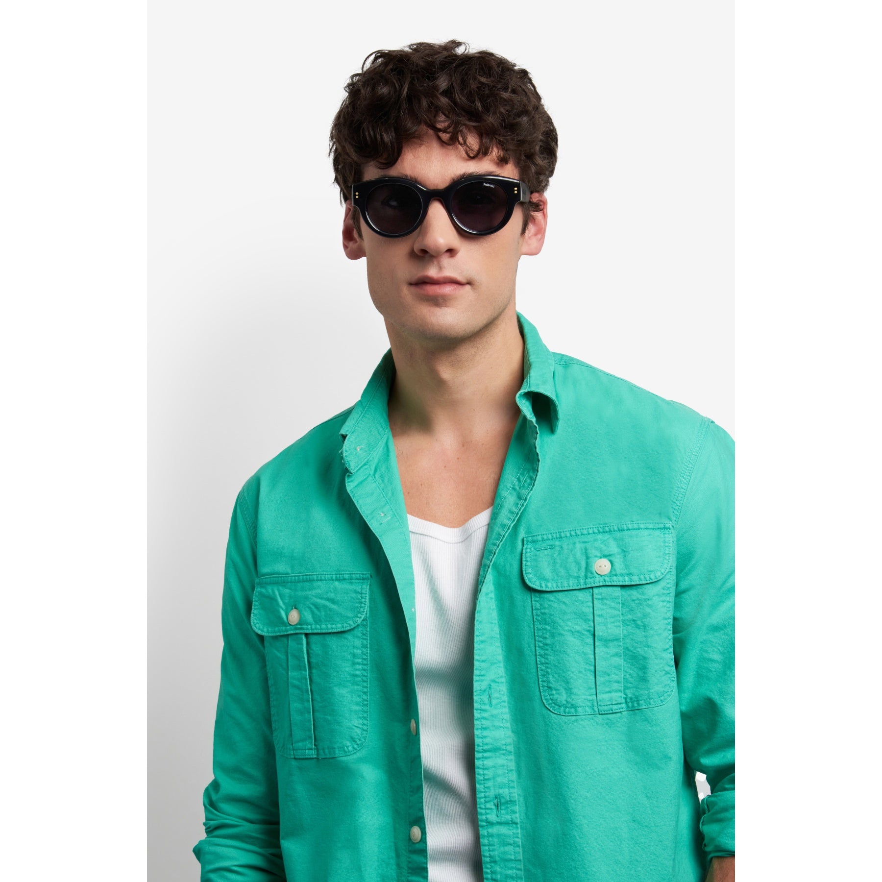 It's impossible not to love the whimsical aesthetic of these unisex sunglasses by Polaroid. Tone-on-tone polarized lenses protect the eyes. The structure is generously proportioned and made with sustainable materials, in-line with Polaroid's green commitment. The multifaceted front is decorated by printed rivets and can be fitted with prescription sun lenses. The temples are finished in a soft rubber coating, trimmed by a raised logo.