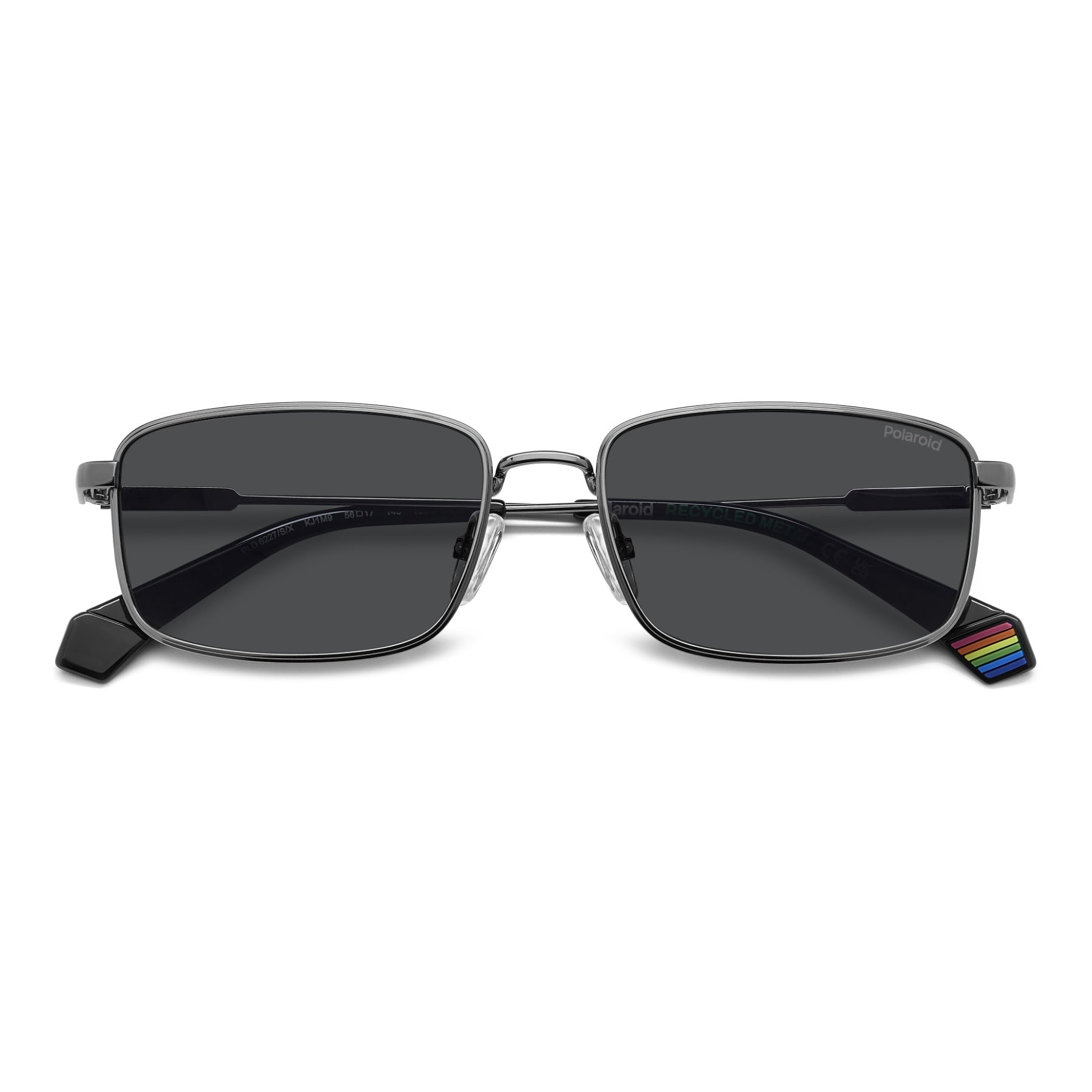 Polaroid is setting trends with these unisex sunglasses. Rectangular frames are a must have this season, here even more notable thanks to the minimalist structure in recycled stainless steel. The ultra-slender temples are trimmed by the laser-engraved logo and culminate in end tips with a rainbow insert. The frames can be fitted with prescription sun lenses, and they come in different versions with an enamel-coated front.