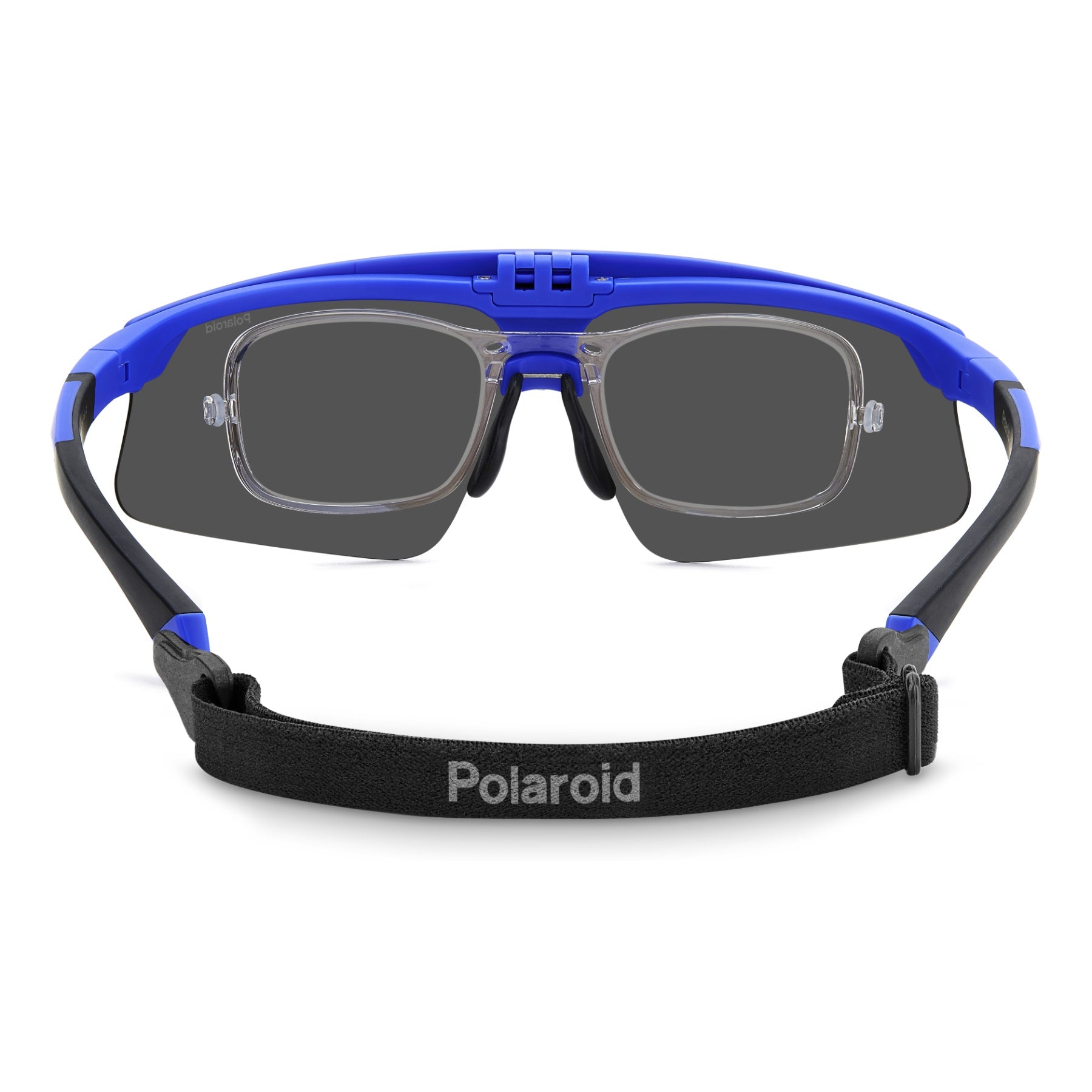 These aerodynamic and high-tech Polaroid sunglasses ride one of the most up-to-date trends in sportswear today. They're composed of a full-coverage frame which rests on rubberised nose pads and end tips for reliable grip. The sun lenses can be raised with a simple movement, revealing the optical lenses below. These glasses can be completed by an elastic strap, purchased separately, which conveniently fits into the openings on the end tips.