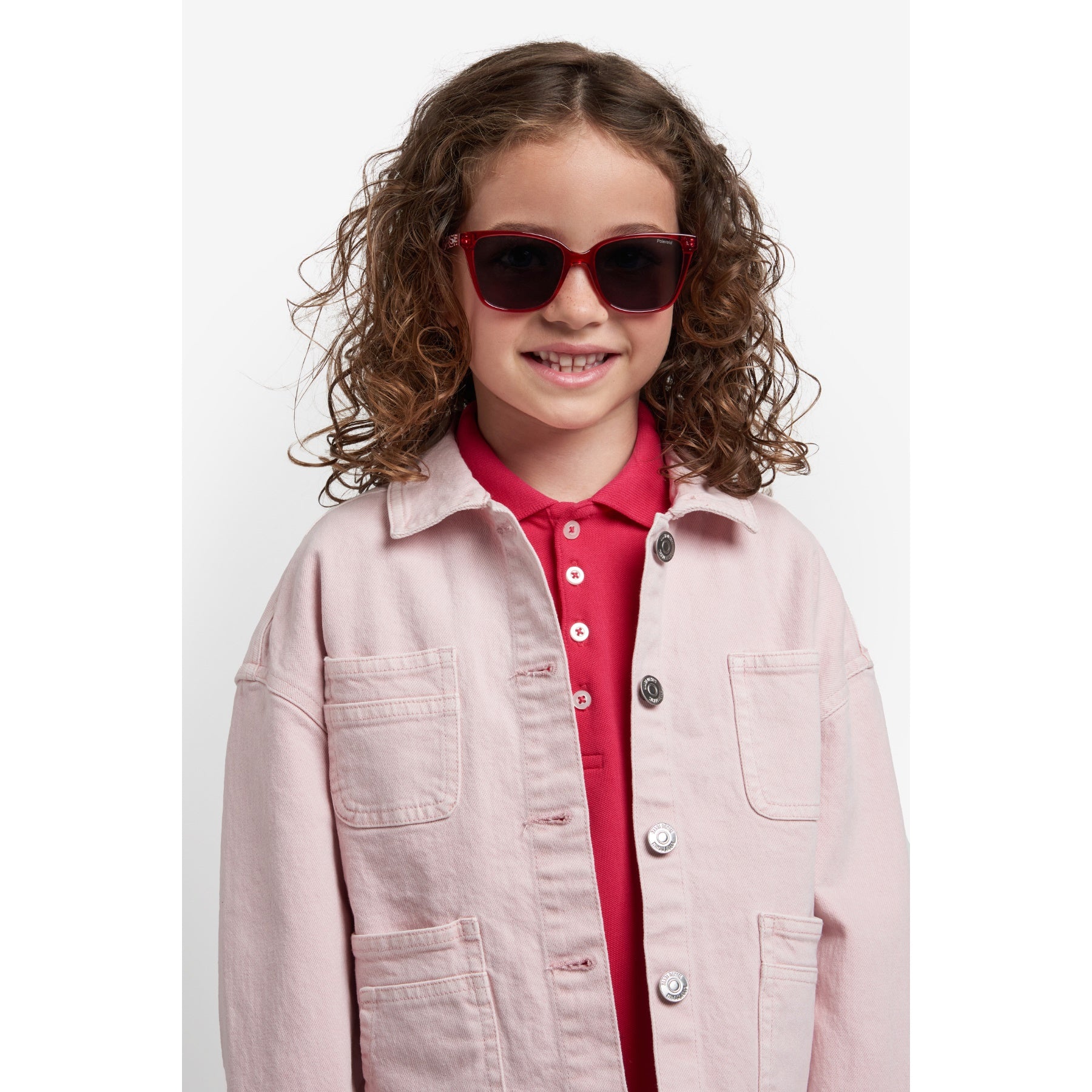 Polaroid dedicates these sunglasses to the it-girls of tomorrow, currently aged 7 to 10 years old. The fun cat-eye shape is highlighted by the vibrant colour palettes, offered on-tone or two-tone options, or with a graphic print. They are worn without complaint thanks to their construction in lightweight polycarbonate, while the polarized lenses ensure absolute safety for little eyes.
