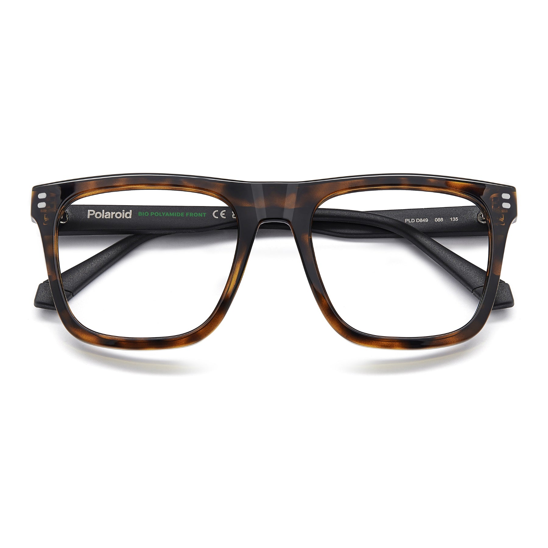 Polaroid eyeglasses for boys ages 11 to 15. Easy to wear, their comfort is guaranteed by rubber temples and lightweight construction, perfect for everyday use. Made with sustainable materials, these glasses are in-line with Polaroid's green commitment. Their contemporary style arises from the rectangular frames that are flat along the top, decorated by printed rivets. The Polaroid logo is raised, for a cool touch.