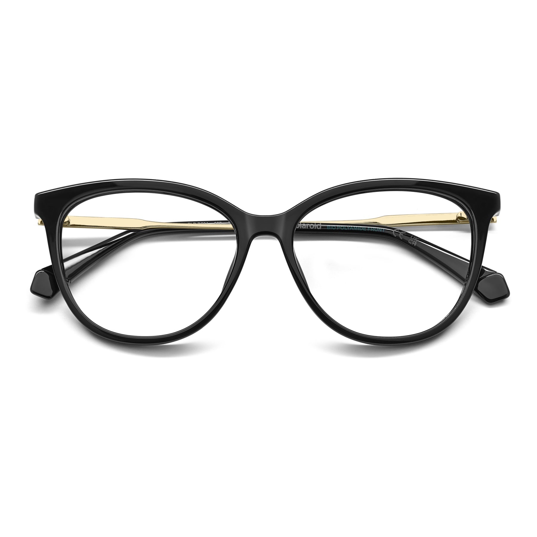 These women’s Polaroid eyeglasses are sure to outlive fleeting trends. The cat-eye front complements the face with proven lightness, affixed to slender temples with an engraved Polaroid logo and on-tone ends. Champions of versatility, these glasses look equally good with trousers and a jacket or a cosy sweatshirt. The use of bio-based and recycled materials confirms Polaroid's commitment to green fashion.