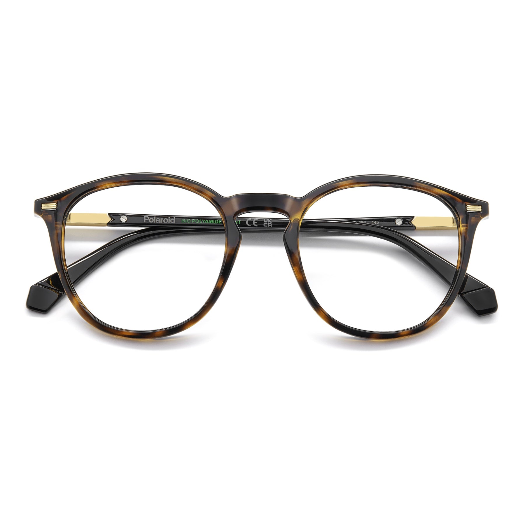 Polaroid updates its best-selling eyeglasses, giving rise to this style for men in eco-polyamide, an environmentally friendly material of tangible quality. Metal details create a premium aesthetic, including the chiselled insert on the temples and the meticulous rivets on the front. The colour palette includes two-tone options which bring a special note even to the most essential outfits.