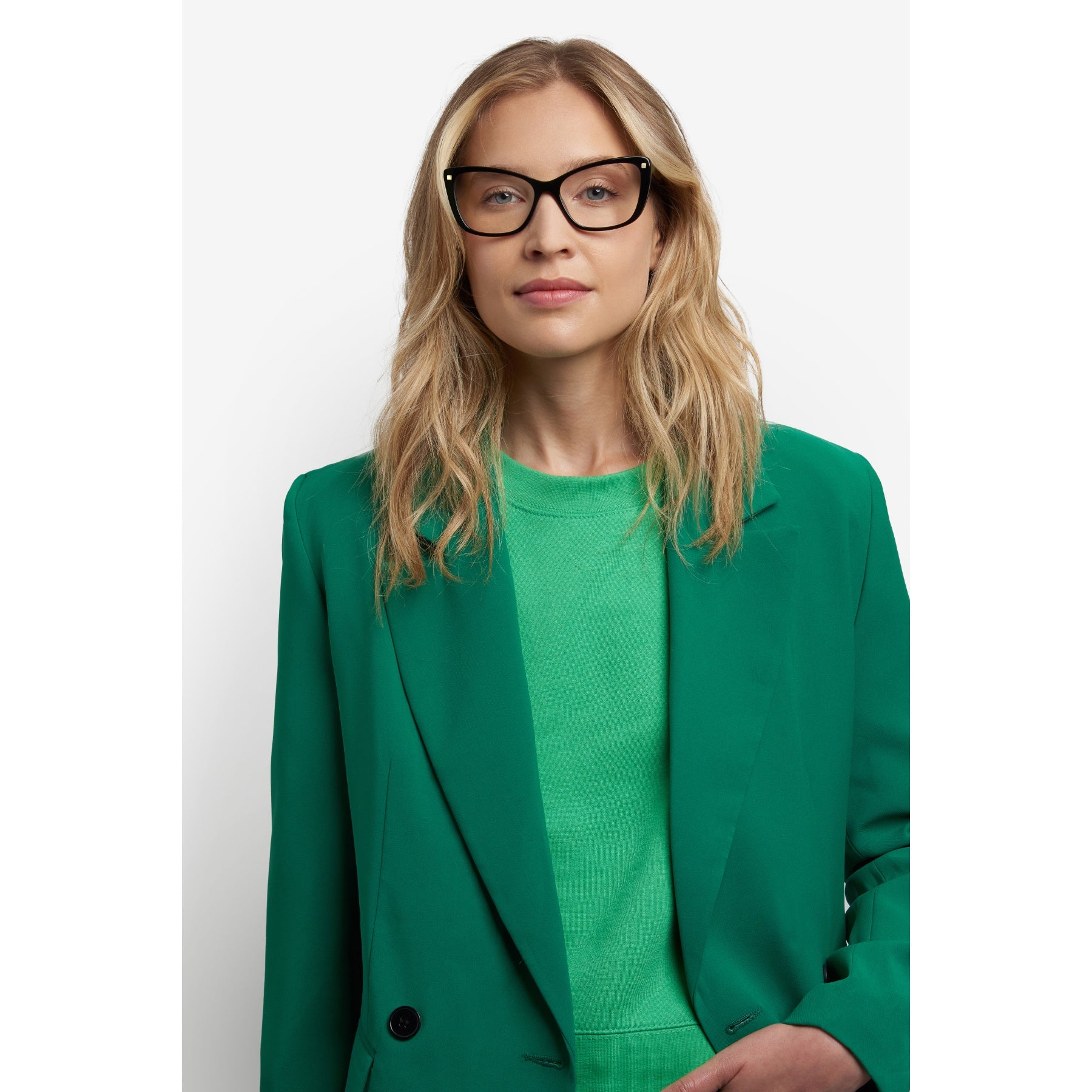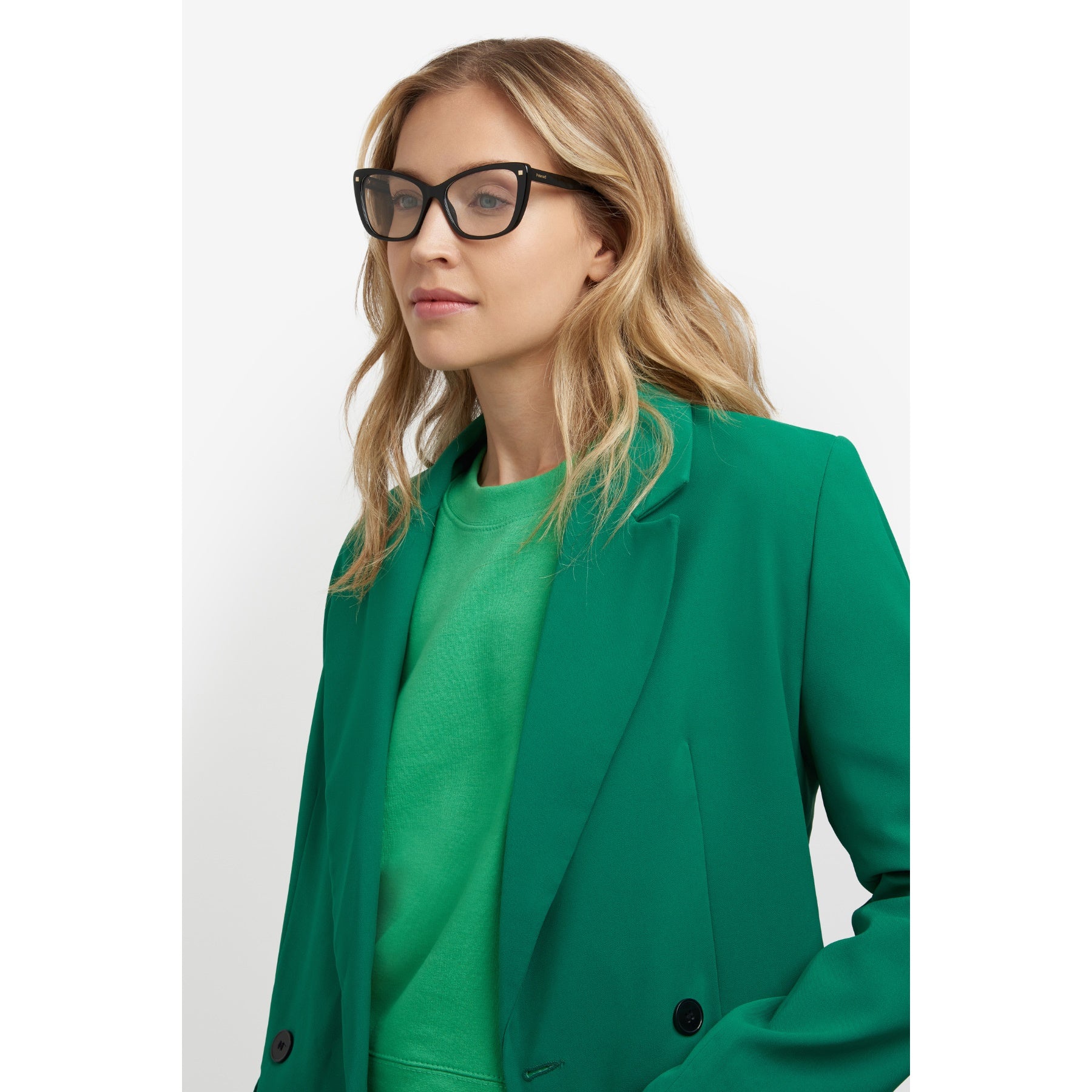 The minimal-chic allure of these women’s eyeglasses by Polaroid is hard to resist. They're crafted in eco-acetate, with a slightly elongated cat-eye shape trimmed by delightful rivets at the front. Wearing them is a pleasure thanks to the comfort of flexible hinges. The Polaroid logo trims these glasses, which are irresistible in their striped front version and surprising in the versions with a visible wire core.