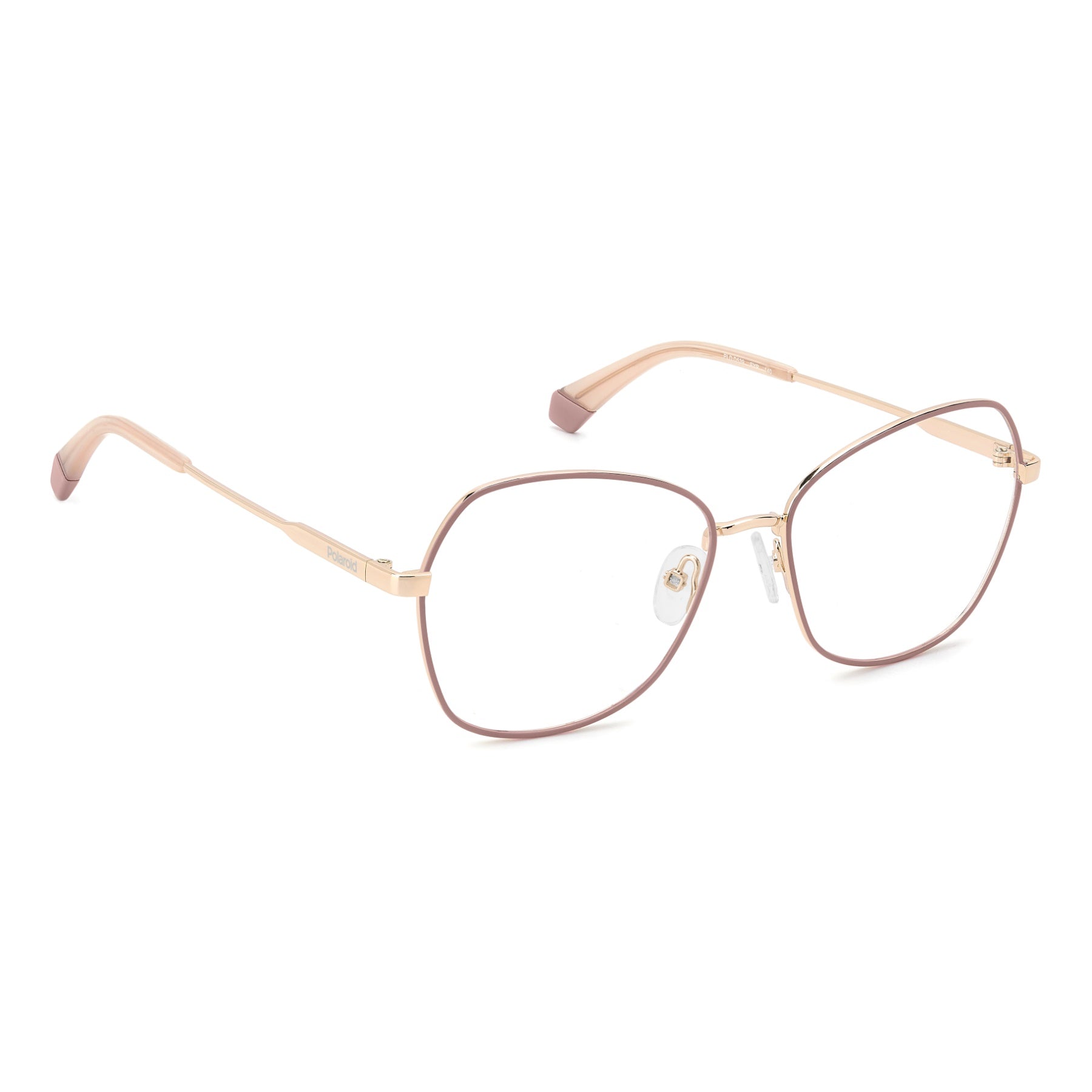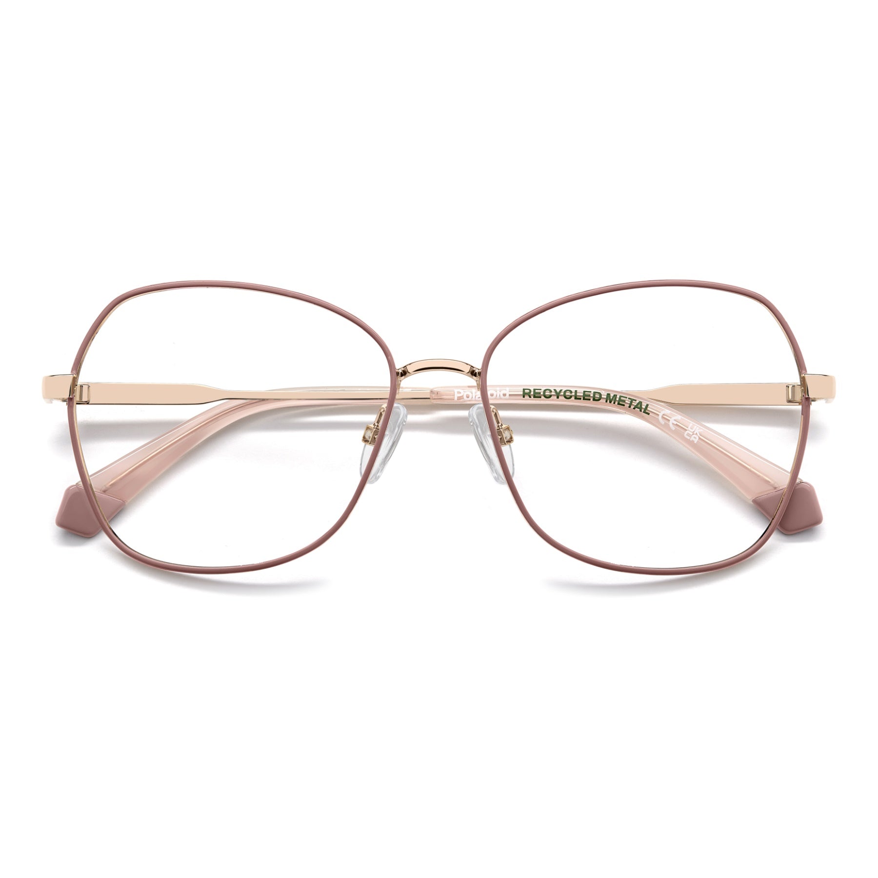 Polaroid keeps it cool and simple with these eyeglasses for women. The linear rims embrace lenses with a butterfly shape, giving rise to impeccable style. Practicality complements aesthetics thanks to their lightweight construction, adjustable nose pads, and comfortable end tips. For an extra dose of personality, they come in a version with an enamel-coated front. The structure is in recycled metal, confirmed by the wording on the end tip.