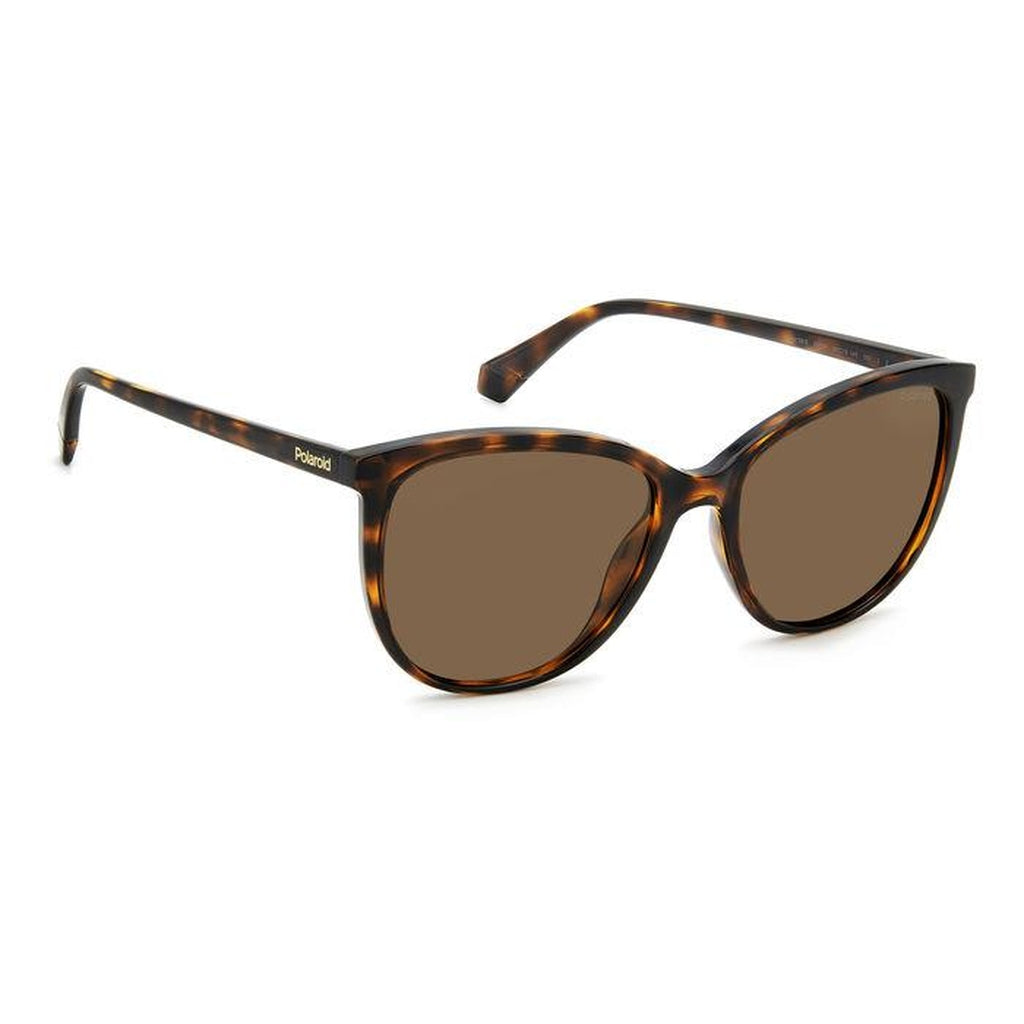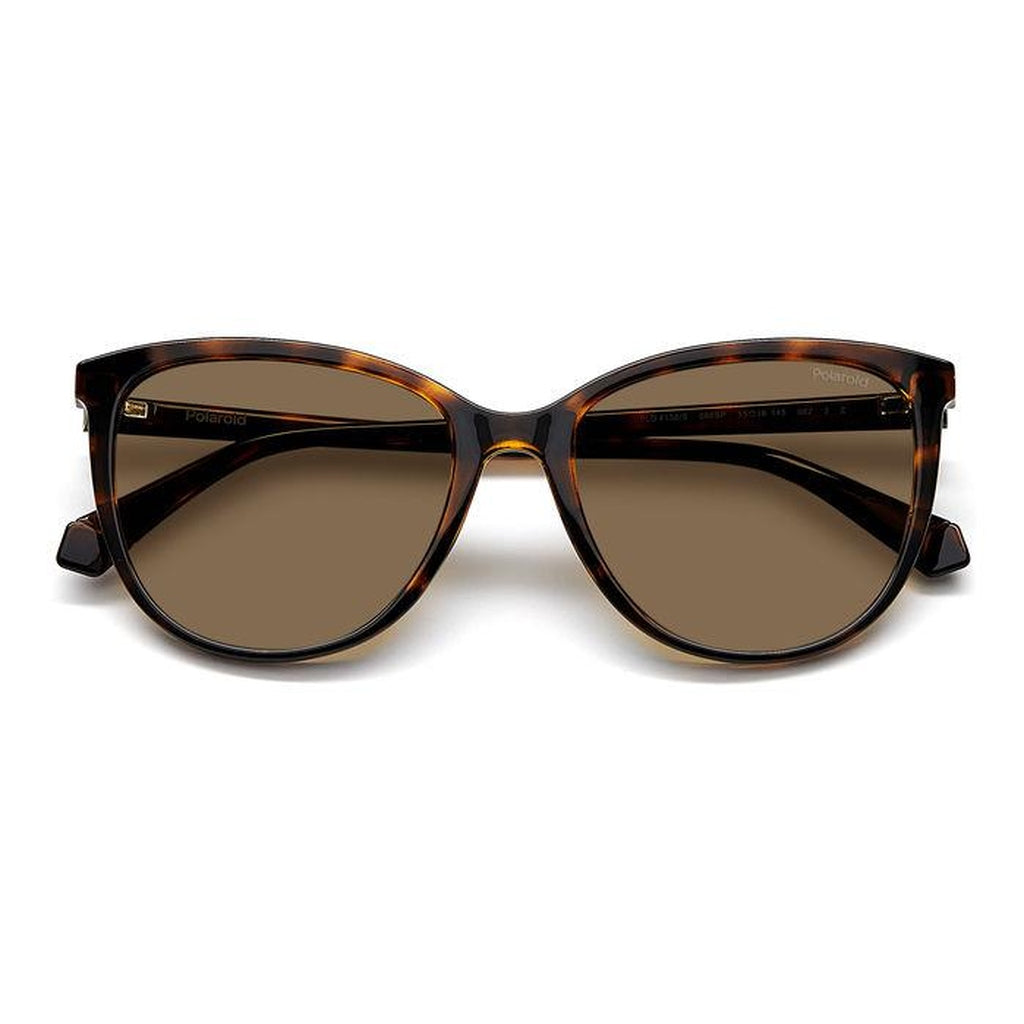 These Polaroid sunglasses have a polycarbonate frame, a rounded feminine silhouette, and temples marked by a printed logo. The brand customised the temples with contrast-colour end tips. It's an easy-to-wear women's eyewear style for any occasion and look.
