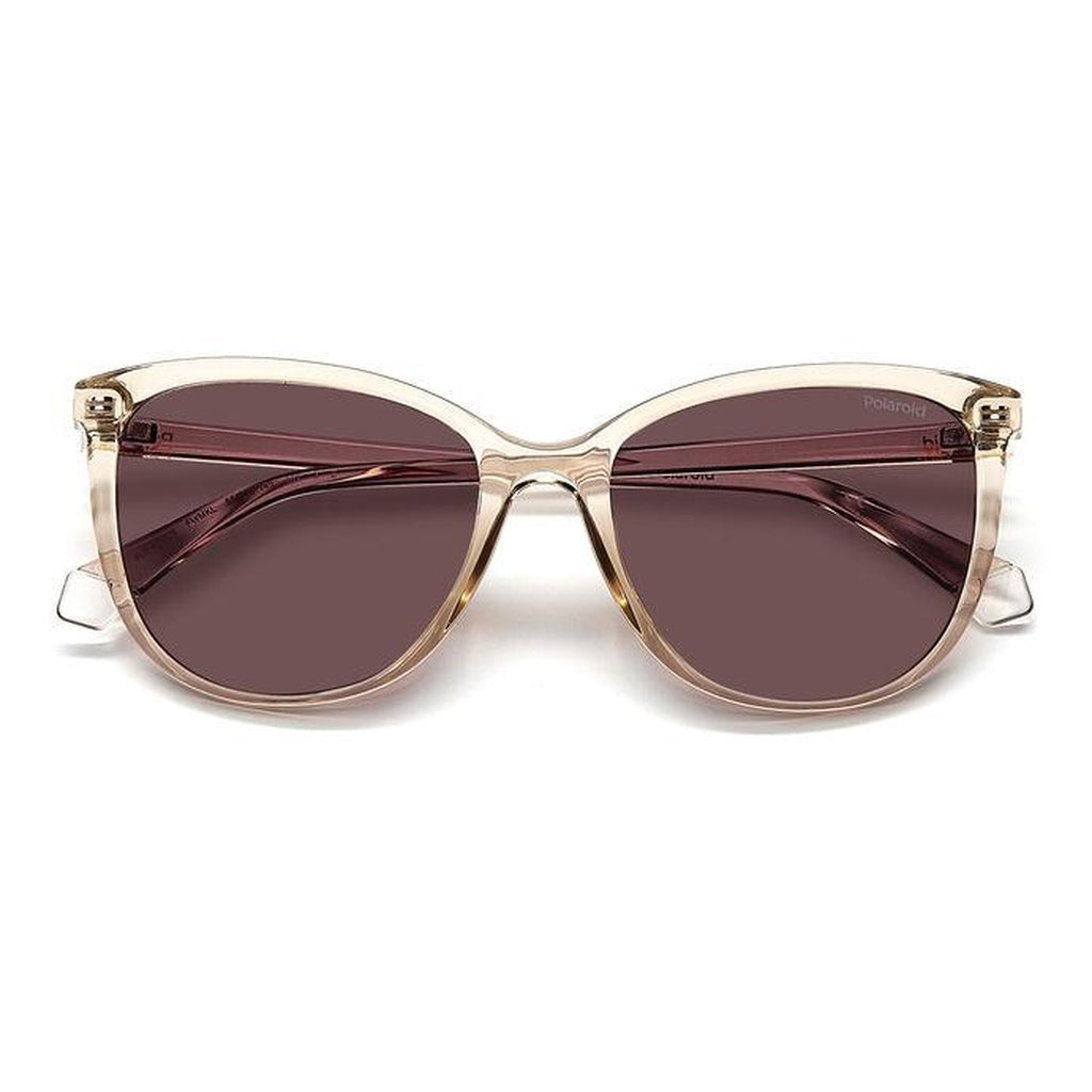 These Polaroid sunglasses have a polycarbonate frame, a rounded feminine silhouette, and temples marked by a printed logo. The brand customised the temples with contrast-colour end tips. It's an easy-to-wear women's eyewear style for any occasion and look.