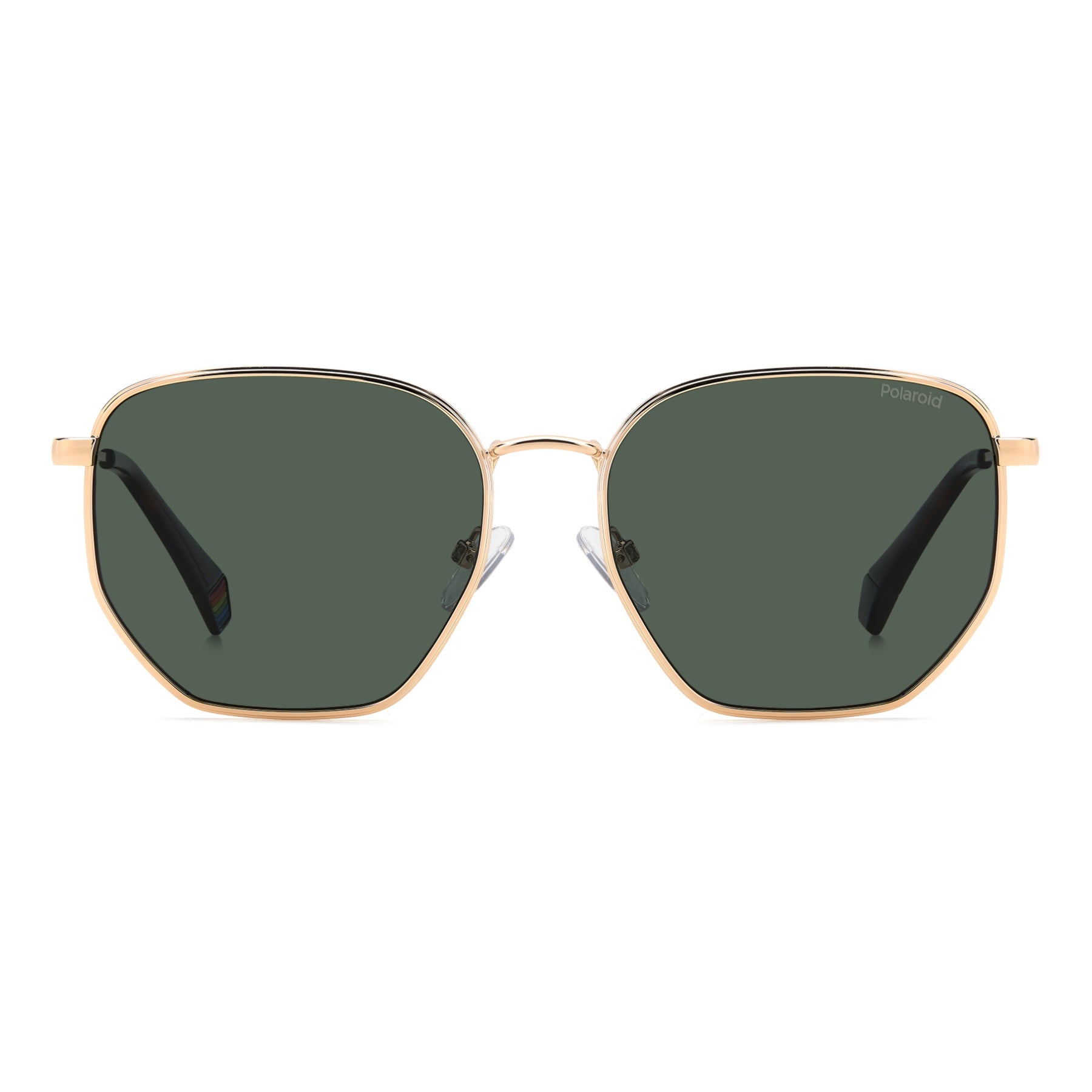 Nothing but love for these Polaroid sunglasses which will bring unrivalled cool to any outfit. The geometric silhouette is a contemporary take on minimalist frames. Comfort is also a priority: the polarized lenses are set into lightweight stainless steel rims (which can also hold prescription lenses) which rest on adjustable nose pads. The slender temples are decorated by a laser-engraved logo and completed by end tips with a rainbow insert. The enamel-front versions add a pop of Polaroid colour.
