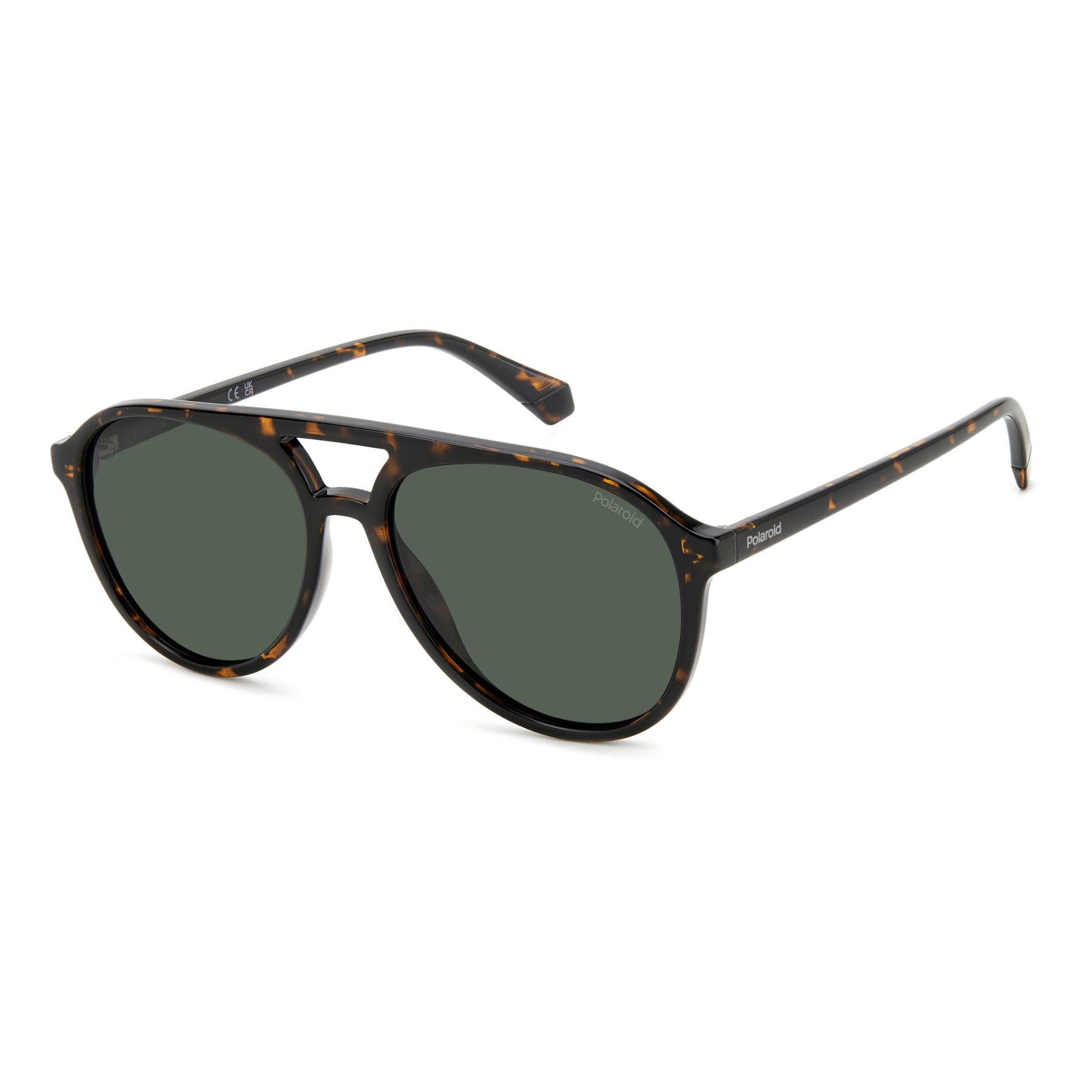 Polaroid sunglasses with a pilot shape and a double bridge, an authentic eyewear classic. The aesthetics of reference are those of the 1980s, already a hit and always on-trend thanks in part to the compact profiles of the frames. They’re made of polycarbonate, a durable material that stands up to heavy use, making it perfect for everyday adventures. The 3D printed logo and the pop of colour on the end tips are elements that identify the brand.