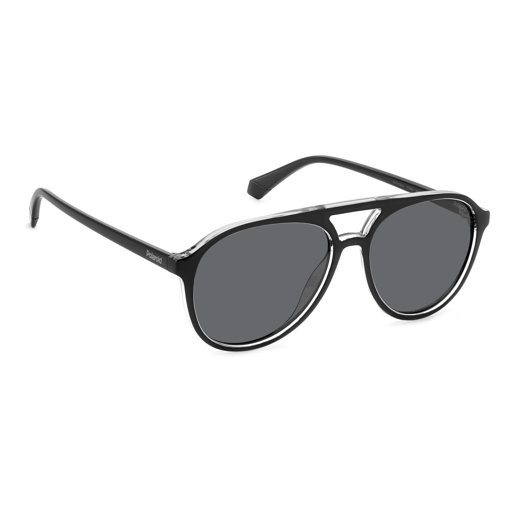 Polaroid sunglasses with a pilot shape and a double bridge, an authentic eyewear classic. The aesthetics of reference are those of the 1980s, already a hit and always on-trend thanks in part to the compact profiles of the frames. They’re made of polycarbonate, a durable material that stands up to heavy use, making it perfect for everyday adventures. The 3D printed logo and the pop of colour on the end tips are elements that identify the brand.