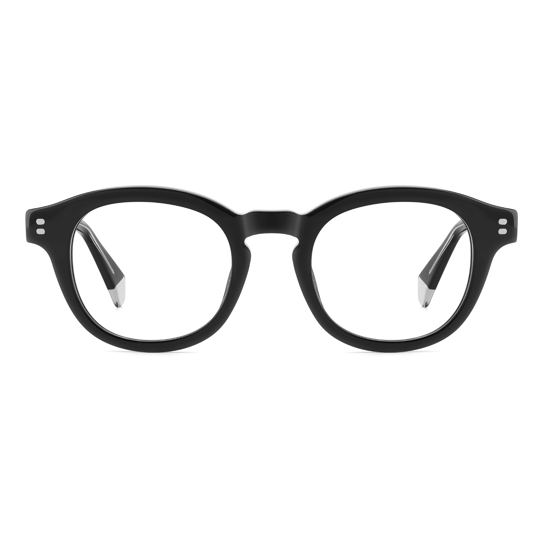 These Polaroid eyeglasses for men are ready to become the wear-everywhere accessory of the season. A versatile favourite, the pantos frames are connected by a keyhole bridge and embellished by rivets at the sides. They're joined by temples with a visible metal core, a printed logo and transparent end tips. The finishing touches? Polaroid has chosen eco-acetate as the material and added flexible hinges for universal comfort.