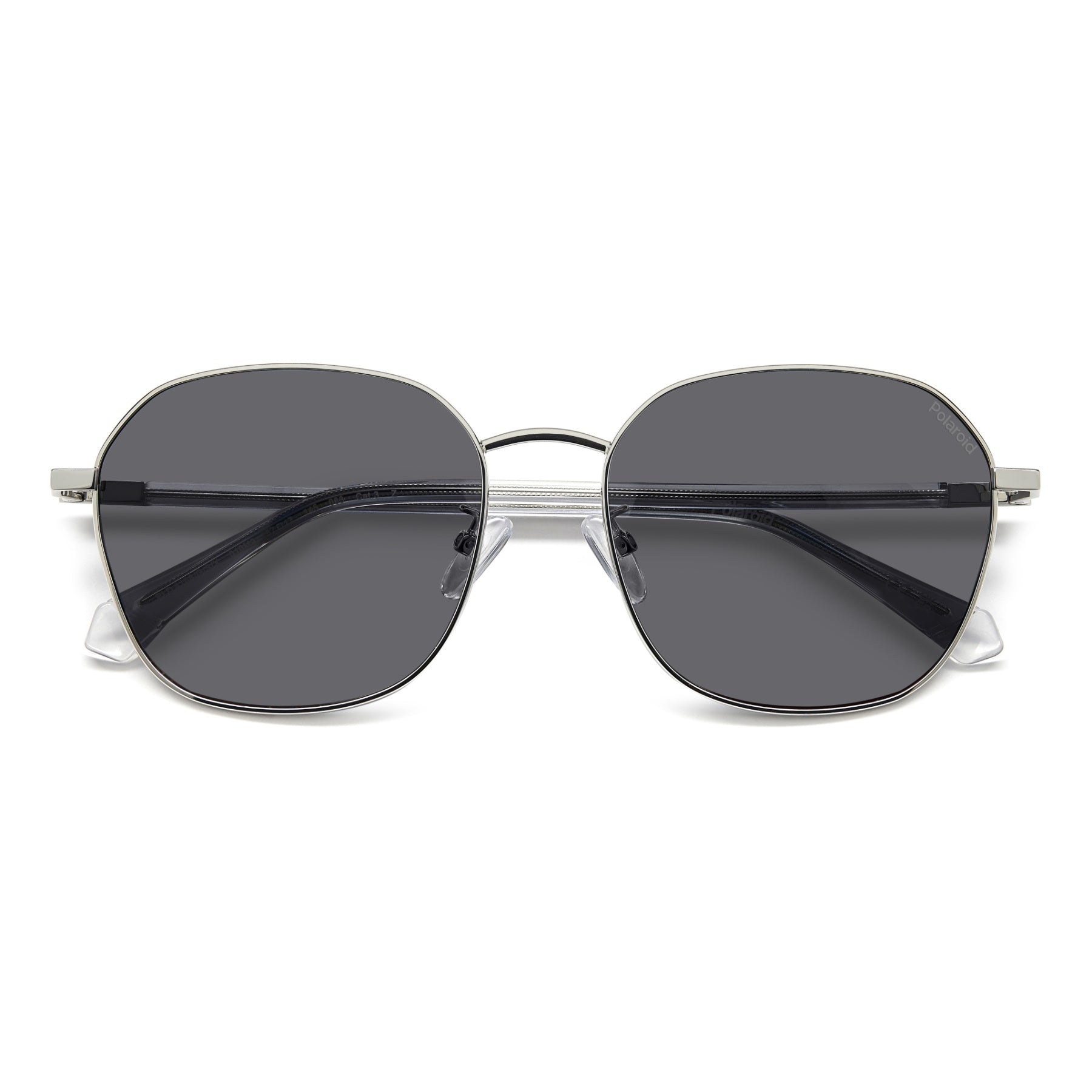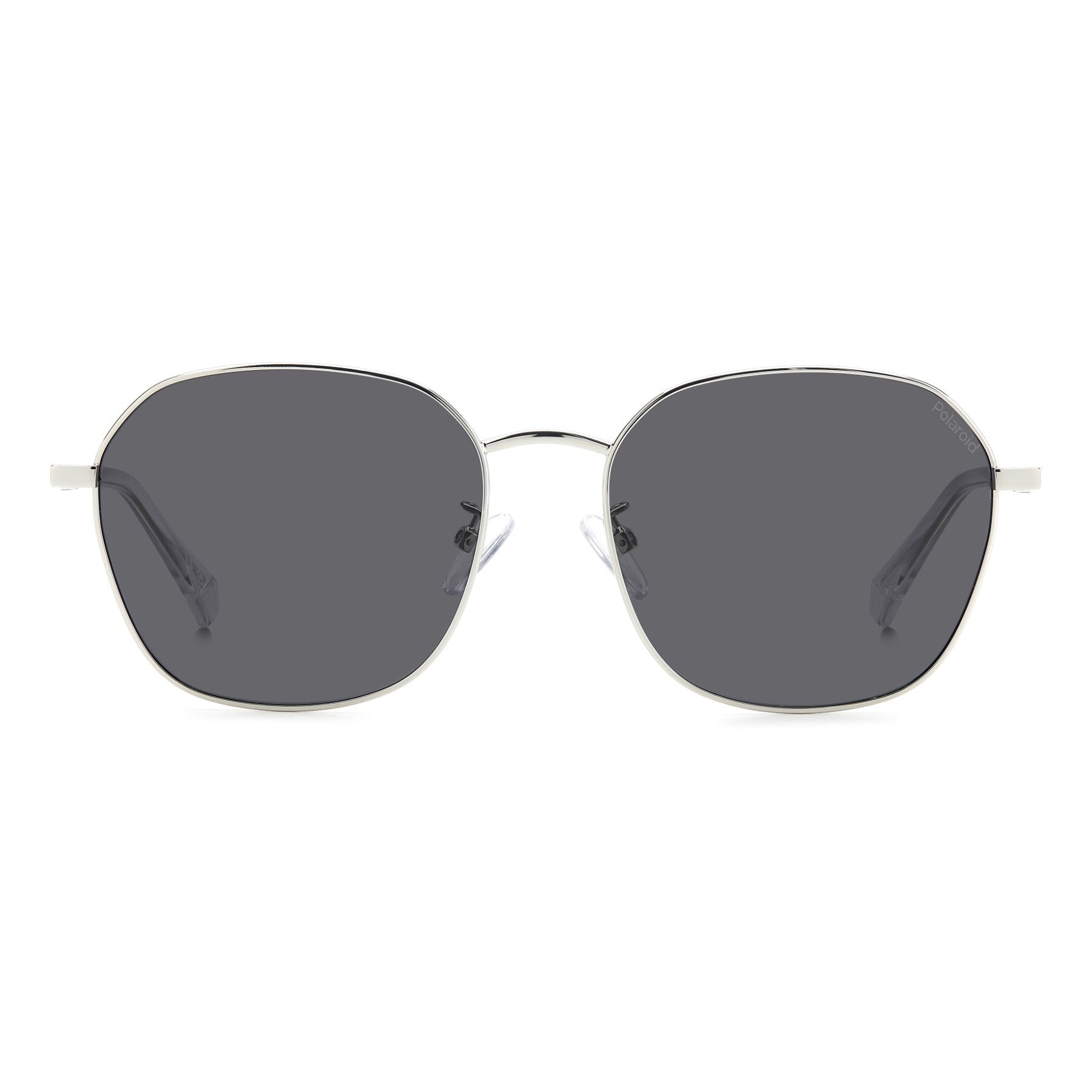Exquisitely retro and essential Polaroid sunglasses. The stainless steel front takes on an unmistakable yet soft geometric form, which can be fitted with prescription or non-prescription lenses. The metal temples are finely engraved with the Polaroid logo, and covered in a long transparent sheath that lets the wire core show through. Lightweight construction, adjustable nose pads and a Global Fit ensure the impeccable comfort of these glasses.