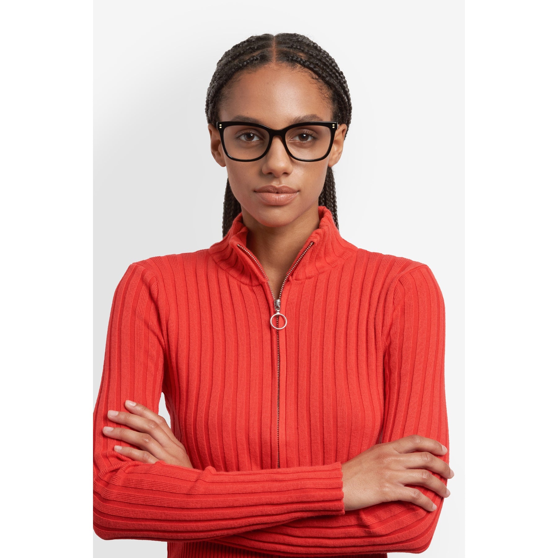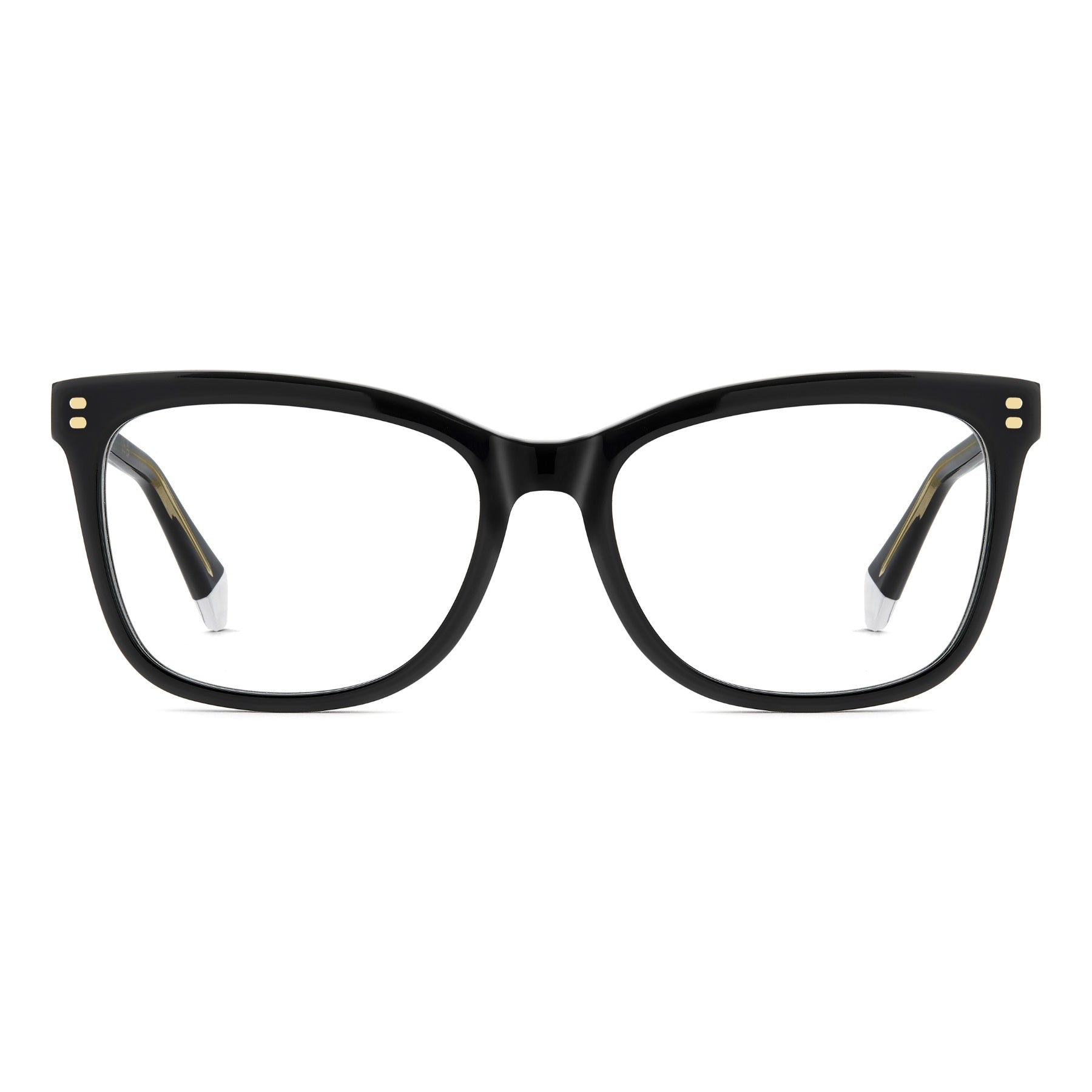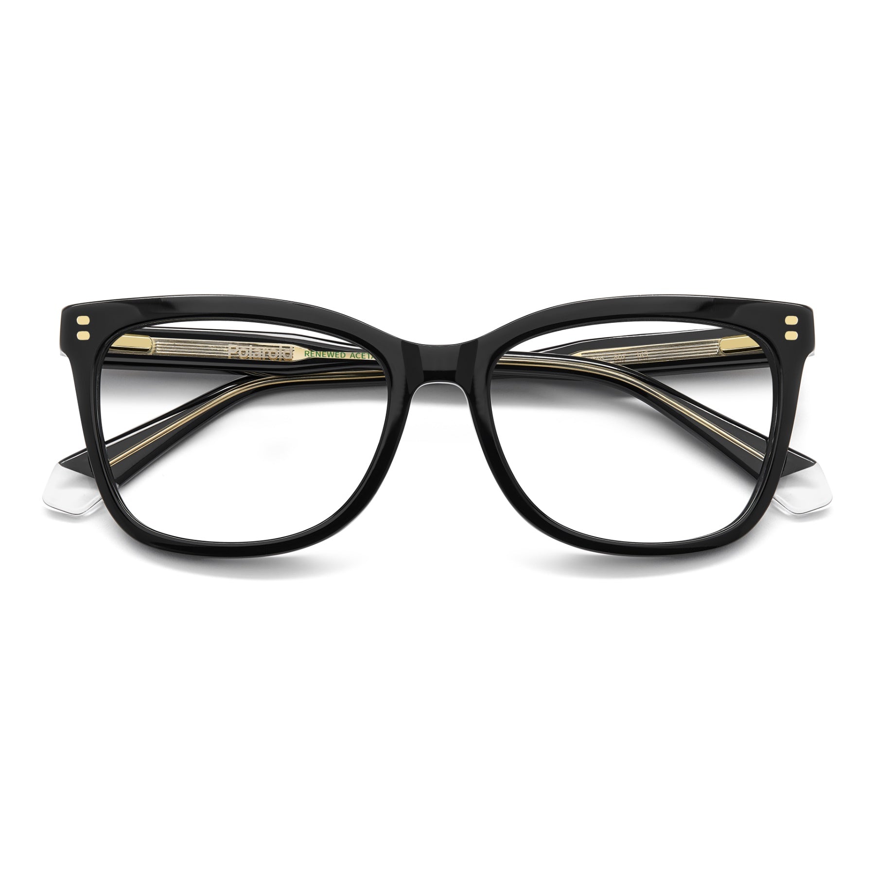 These women's eyeglasses by Polaroid are a flawless classic that goes seamlessly with any outfit. Crafted in eco-acetate, they’re elegant in their simplicity, with front rivets inspired by the Polaroid logo. Flexible hinges ensure an impeccable fit. The personality of this style comes through in the colour palette, including in the version with a multi-layer front and the one with clear temples in which the wire core is visible. For get-noticed style that’s truly effortless.