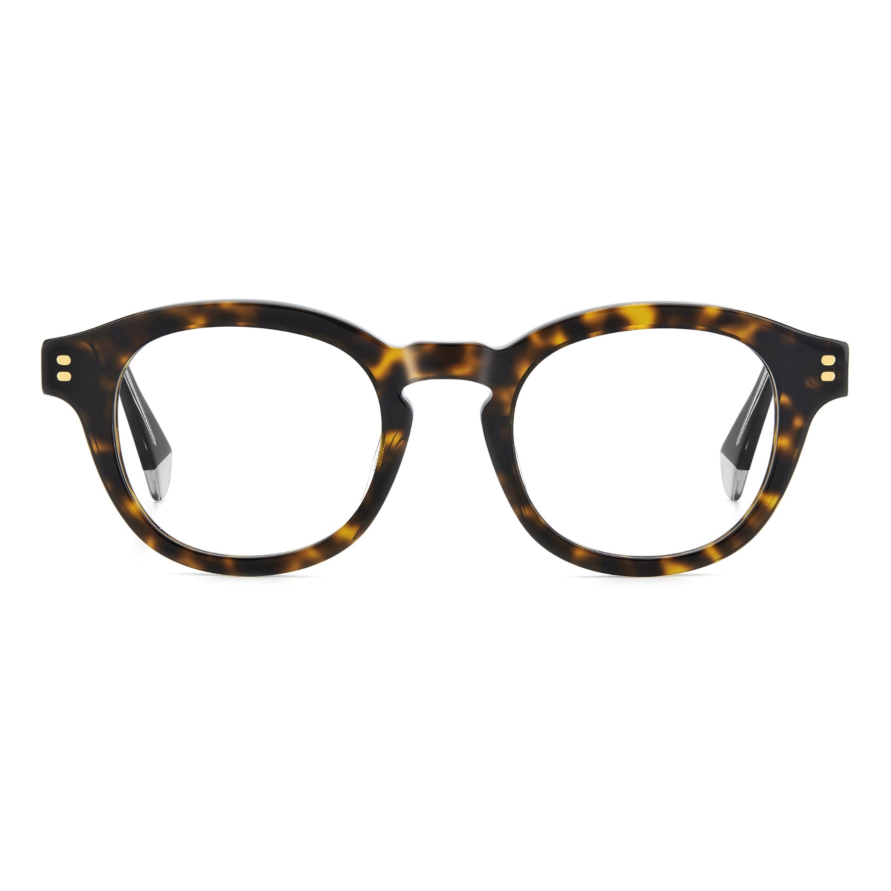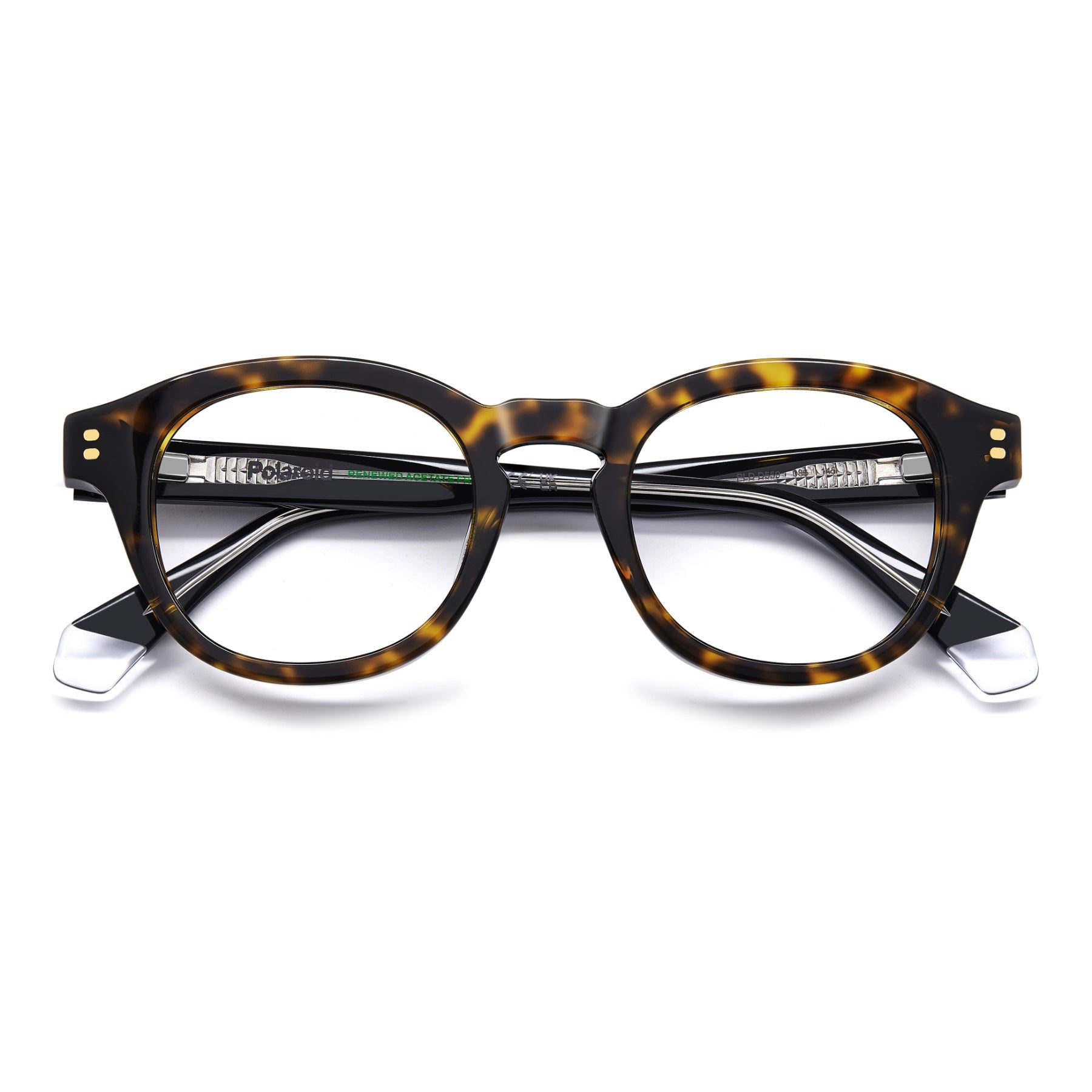 These Polaroid eyeglasses for men are ready to become the wear-everywhere accessory of the season. A versatile favourite, the pantos frames are connected by a keyhole bridge and embellished by rivets at the sides. They're joined by temples with a visible metal core, a printed logo and transparent end tips. The finishing touches? Polaroid has chosen eco-acetate as the material and added flexible hinges for universal comfort.