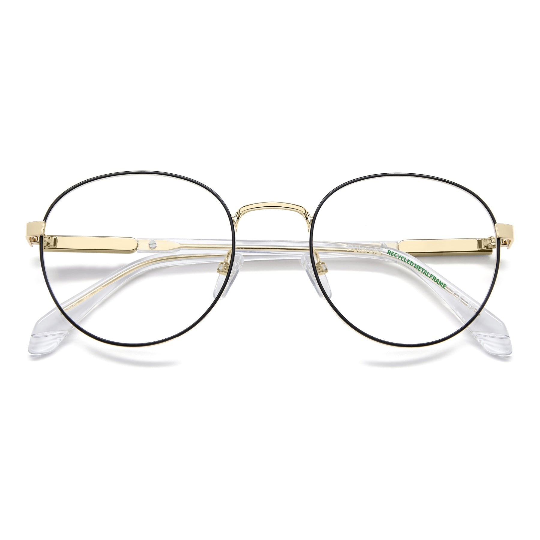 Classic inspiration and easy-to-wear design are united in these men's optical glasses by Polaroid Eyewear. The recycled stainless steel rims are lightweight, stabilised by the comfortable and adjustable nose pads. On the temples near the front, metal hardware with the raised Polaroid logo is a contemporary detail that updates their style. The understated palette is versatile, complete with transparent elements for a fresh touch.
